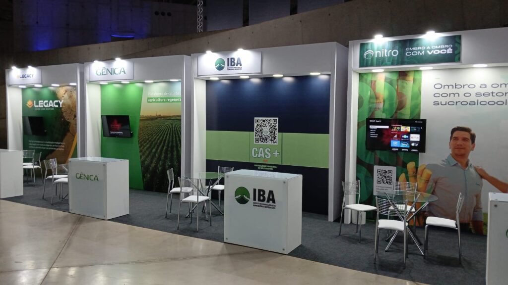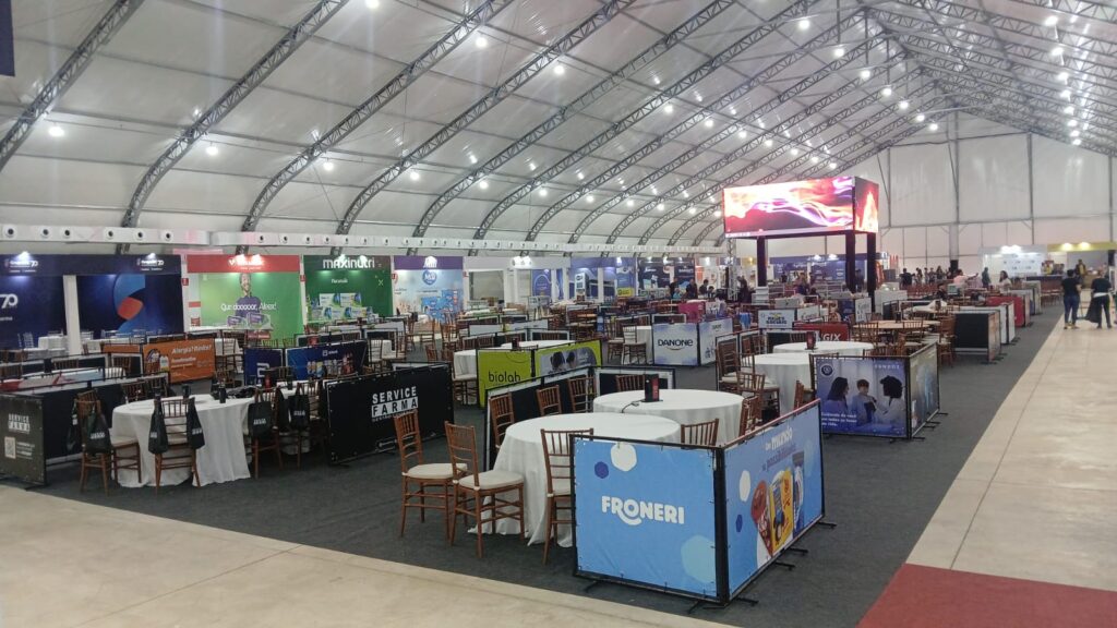 Essa estrutura transforma cada estande em um ponto ativo de relacionamento comercial.